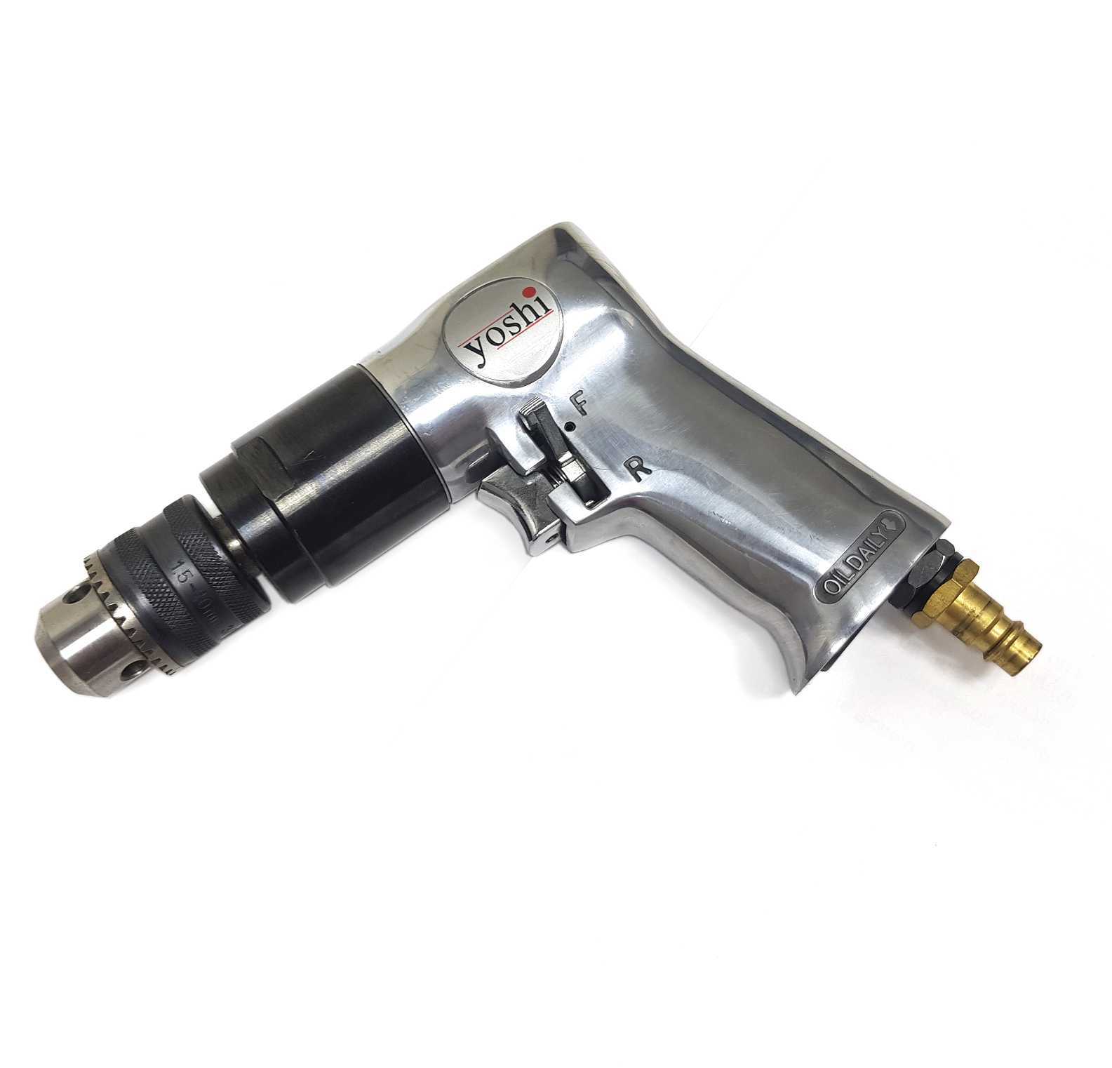 Быстрозажимной патрон пневмодрели Yoshi D817 KL позволяет легко заменить сверло . Компактный корпус предоставляет возможность использовать инструмент в стесненных условиях, а высокий крутящий момент позволяет обрабатывать самые твердые материалы.Наличие реверса делает данную модель еще более привлекательной.