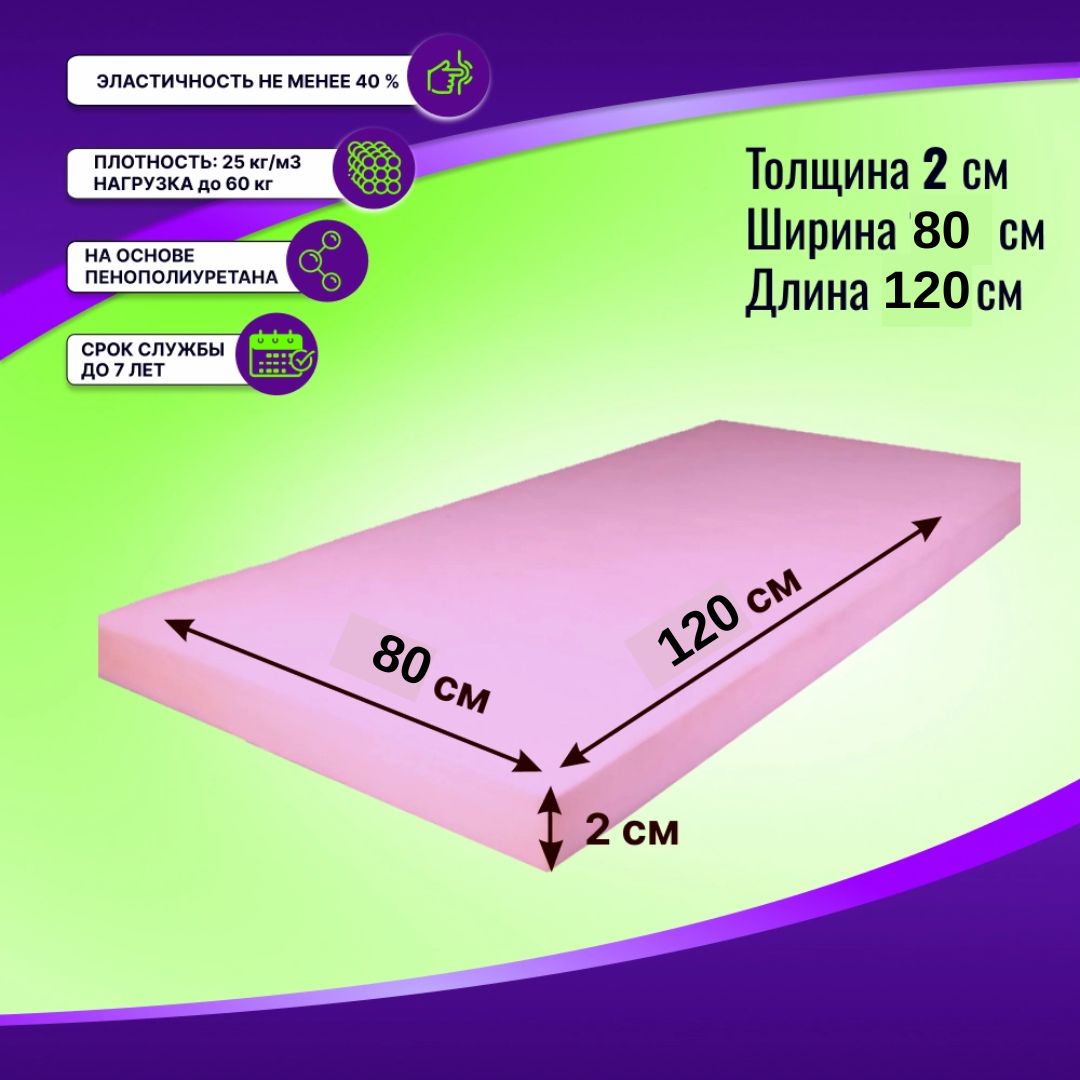 Поролон ST 2536 толщиной 2 см универсальная стандартная марка средней жесткости 3.6 кПа и средней плотности 25 кг/м3., сроком службы до 7 лет